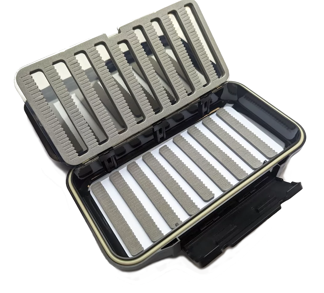 Le compartiment inférieur est plus profond, ce qui permet de stocker également des mouches sèches ou des streamers.